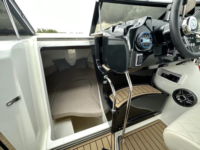 Net als zijn open broertje is de Texas 596 ontworpen voor maximaal comfort tijdens lange dagen op het water. Het interieur is ongekend luxe voor een boot van deze afmetingen. Met een separate toiletruimte, een ingebouwde koelkast en een wasbakje met kraan is dit de ultieme cruiser. De breedte van 2,49 meter zorgt voor een rotsvaste stabiliteit, terwijl het onderwaterschip garant staat voor sportieve prestaties.