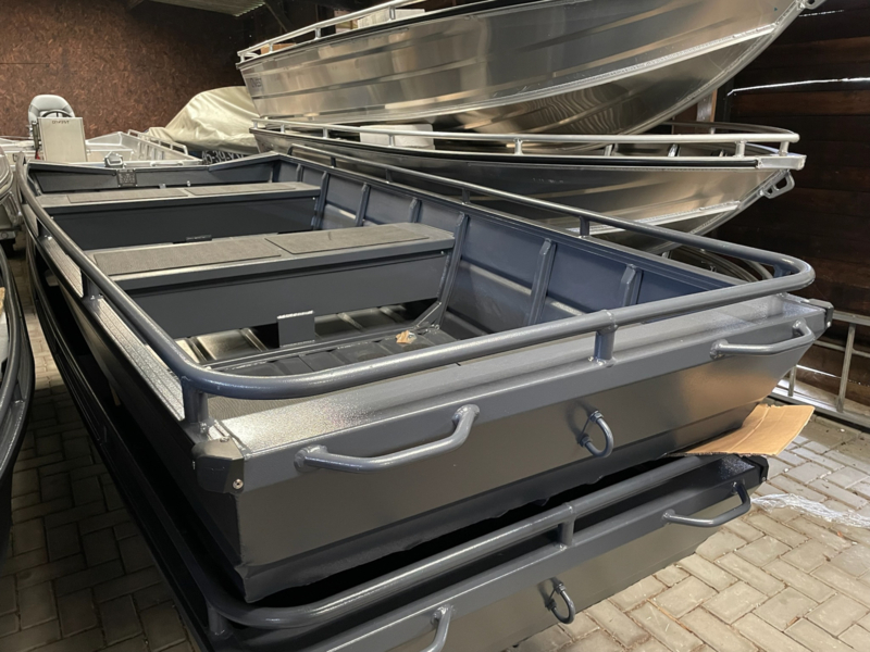 De Luxe Visboot: Voor de visser die waarde hecht aan uitstraling én functionaliteit. De donkere coating voorkomt hinderlijke reflecties van de zon op het aluminium, wat prettiger is voor de ogen tijdens lange dagen op het water. De stabiliteit en ruimte blijven onveranderd superieur.
